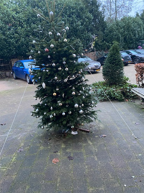 Het huurdersbelang heeft, samen met Woningstichting Naarden en de bewonerscommissies, bij de wooncomplexen kerstbomen geplaatst.